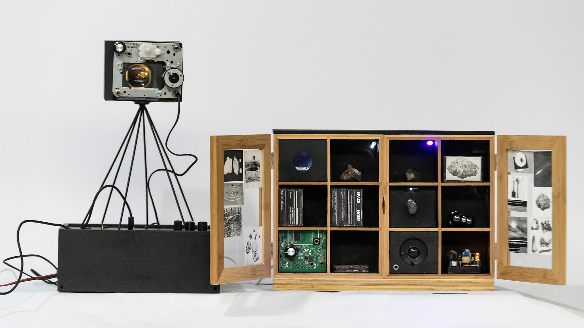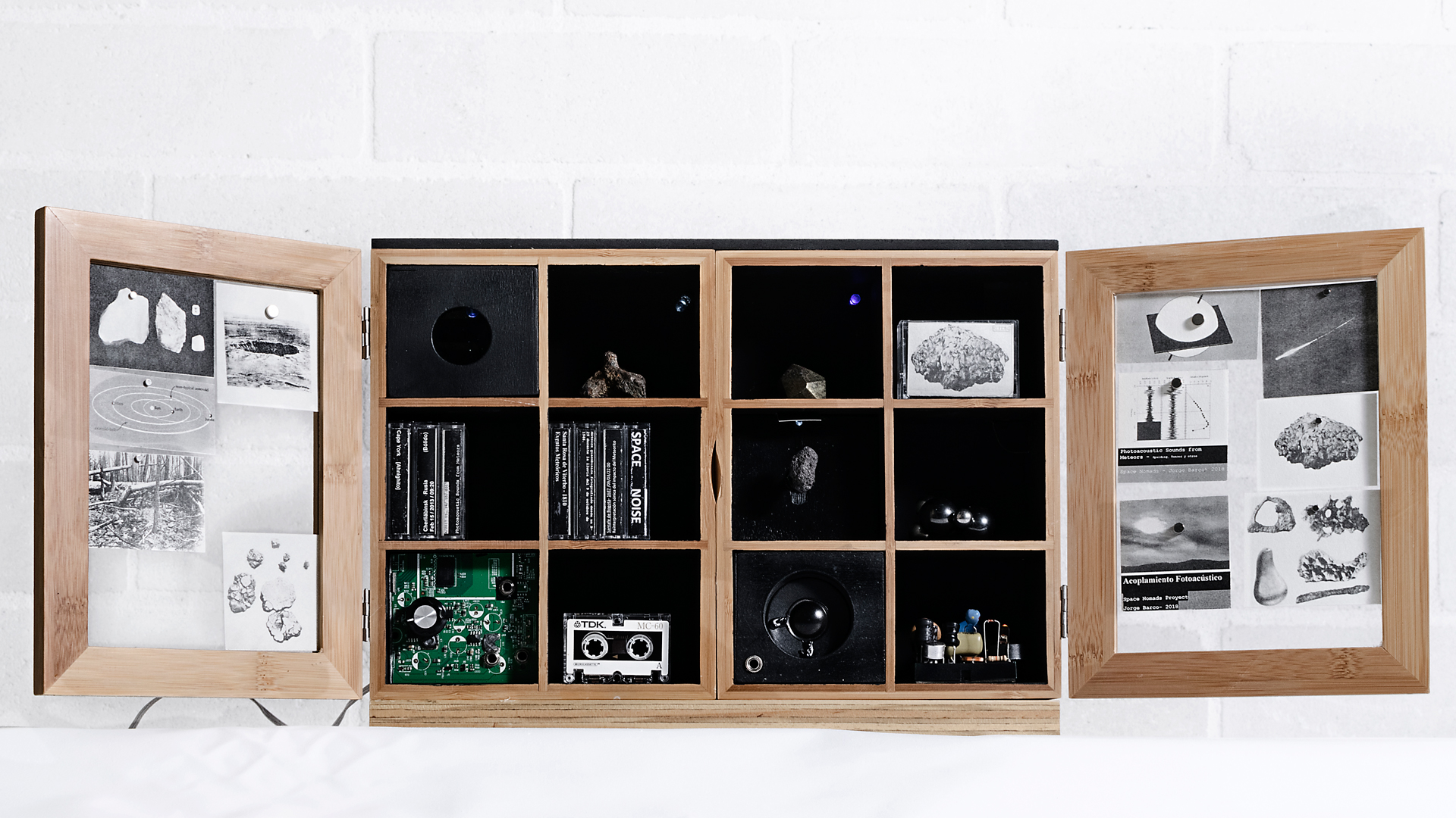 Esta obra consiste en un juguete filosófico (cámara de maravillas-máquina sonora) desde el cual se hace ficción en torno a los imaginarios espaciales y al sonido de los meteoritos cuando impactan la atmósfera terrestre. Procesos sonoros y visuales generados con tecnologías low tech, fragmentos de meteoritos, otros minerales y archivos, y una composición hecha con los sonidos propios de esta máquina modular generados por fricción, electromagnetismo y síntesis analógica, sumados a archivos de la Nasa y el proyecto Alma se funden en una atmósfera envolvente que evoca la fuerza de los misiles cósmicos y los intentos científicos por comprenderlos. Esta obra toma como referente uno de los primeros libros realizados en torno al estudio de los meteoritos: Space Nomads, Meteorites in Ski, Field & Laboratory, publicada en el 1961 por Lincoln LaPaz y su hija Jean LaPaz.